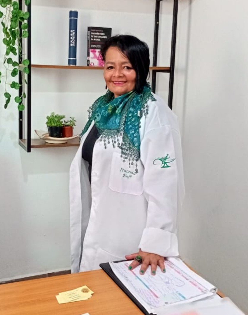 No Consultório Vida e Cuidado, a Enfermeira Iracema Leão dedica-se a orientar e atender pacientes com atenção integral, promovendo bem-estar e qualidade de vida através do cuidado técnico e humano.